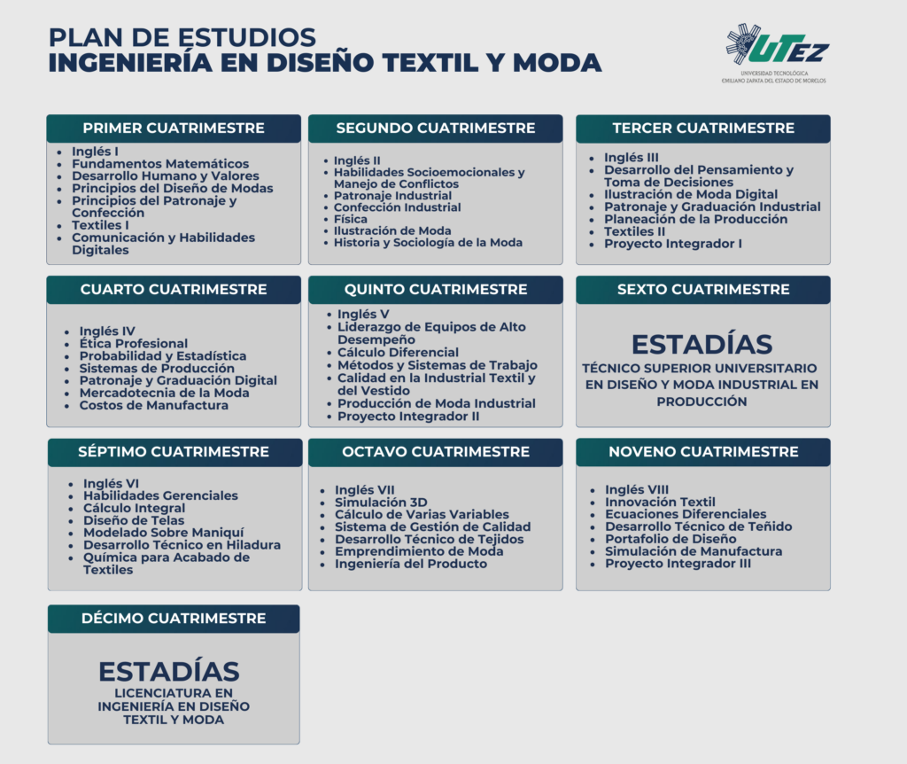 Con la Ingeniería en Diseño Textil y Moda, transformarás la industria con propuestas innovadoras, sostenibles y creativas. Prepárate para ser líder en diseño y moda con una visión global y responsable. ¡Únete a la UTEZ, Territorio de calidad!