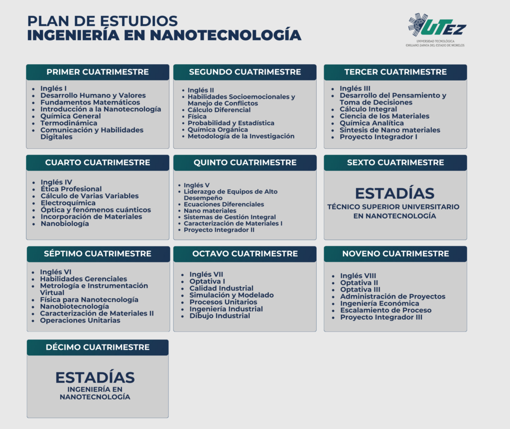Con la Ingeniería en Nanotecnología, liderarás la innovación en sectores clave, desarrollando materiales y soluciones que impactan positivamente en la sociedad y el medio ambiente. ¡Forma parte del futuro con la UTEZ, Territorio de calidad!